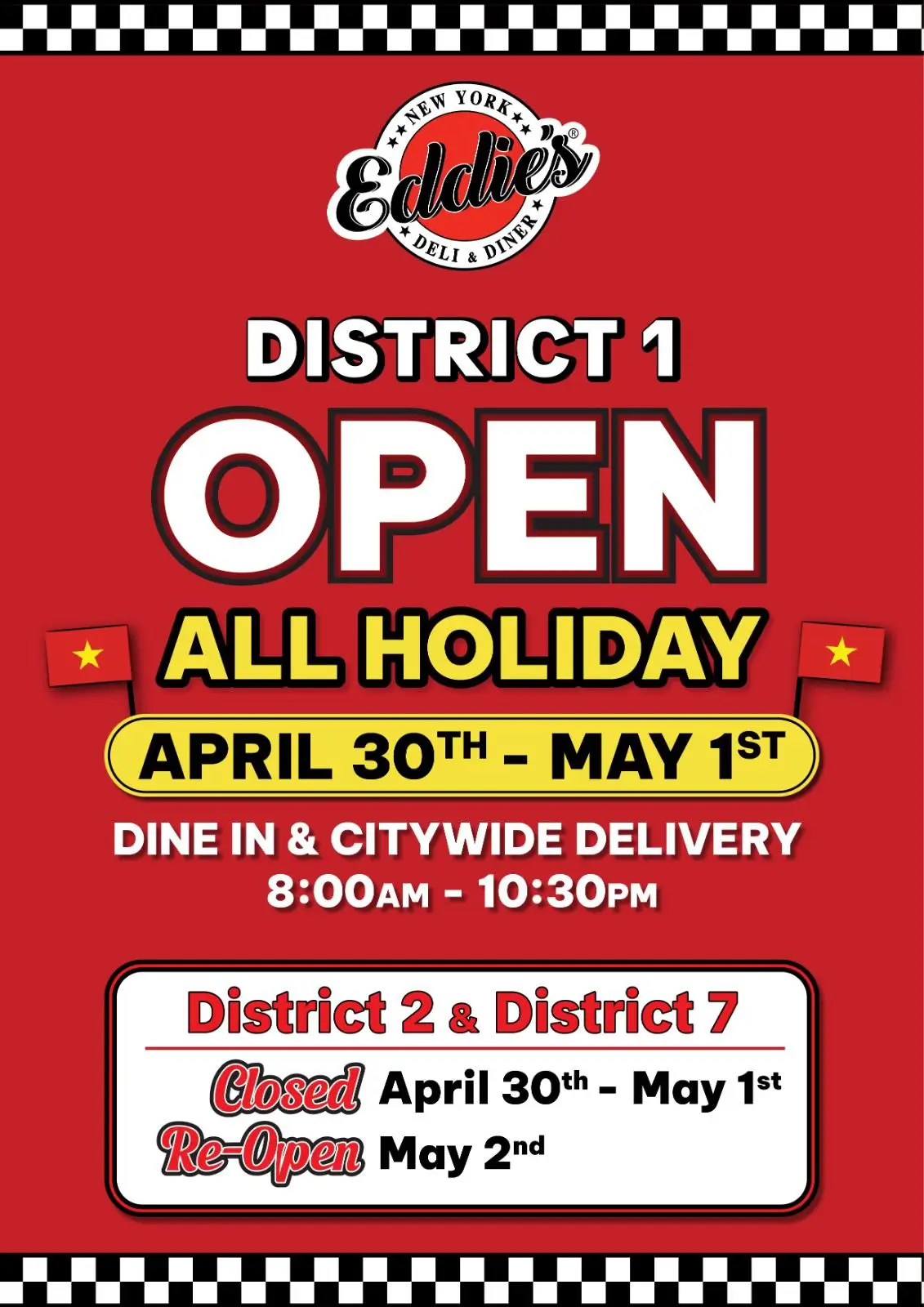 Eddie’s is an authentic American Diner in Ho Chi Minh City, serving classic comfort food across three convenient locations — District 1, District 2 (Thao Dien), and District 7. Dine in, take away, or order delivery wherever you are in Saigon!