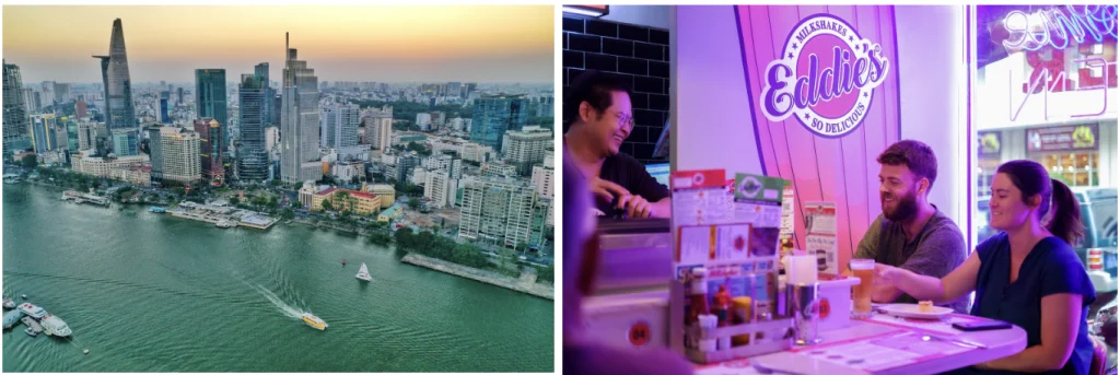 사이공은 언제나 활기차고 현대적인 매력으로 가득하지만, 진짜 사이공을 느껴본 적 있나요? 사이공 강 위를 떠나는 워터버스 여행 은 그저 편안한 여행이 아니라, 상쾌한 공기를 마시며 도시의 또 다른 면을 발견할 수 있는 완전 새로운 경험이에요. 강 위에서 사이 공을 바라보면, 그 어떤 곳에서도 느낄 수 없는 특별한 감동이 밀려옵니다. 이 여행은 1군의 인기 레스토랑, Eddie’s Diner 에디스 다이너에서 맛있는 미국식 햄버거로 마무리하면 더 이상 말할 것도 없이 완벽하죠!
