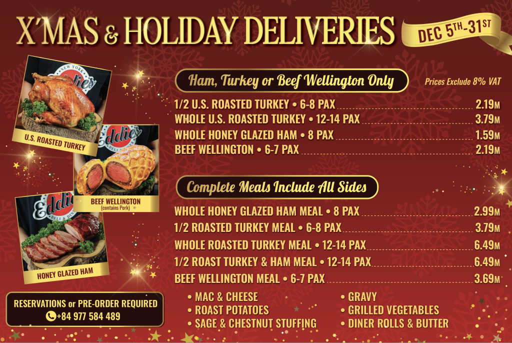 👉 Enjoy the warmth, flavors, and joy of a true American Christmas — only at Eddie’s D1 • D2 • D7.